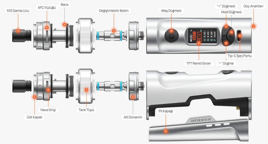 Aspire Boxxer, güçlü performans, ayarlanabilir özellikler ve şık tasarımı bir arada arayan kullanıcılar için idealdir. Hem MTL hem de DL kullanıcıları için esneklik sunar.