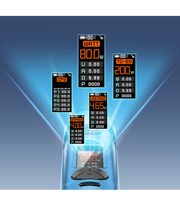 • Çoklu çıkış modları: Watt, Voltaj, Bypass, TC ve CPS seçenekleriyle esnek kullanım.