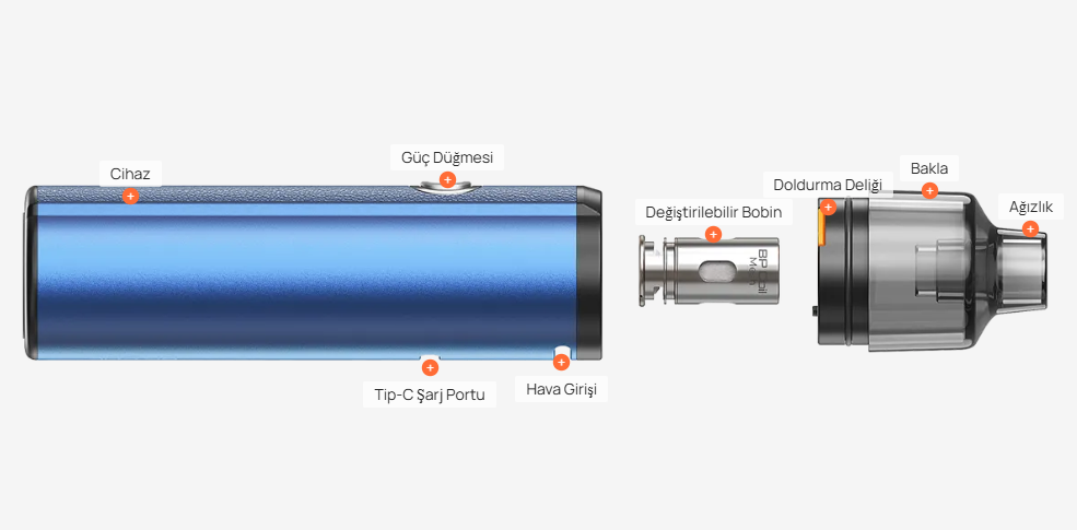• Geniş pod kapasitesi: 5 ml standart pod ve 2 ml TPD uyumlu pod ile uzun süreli kullanım.