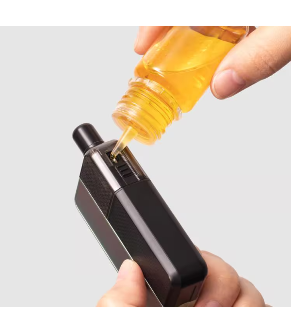 Aspire Revolto Pod Mod dolum prosedürü, likit şişesi ile tank dolum ağzı detayı. Aspire Revolto Pod Mod dolum prosedürü, likit şişesi ile tank dolum ağzı detayı.
