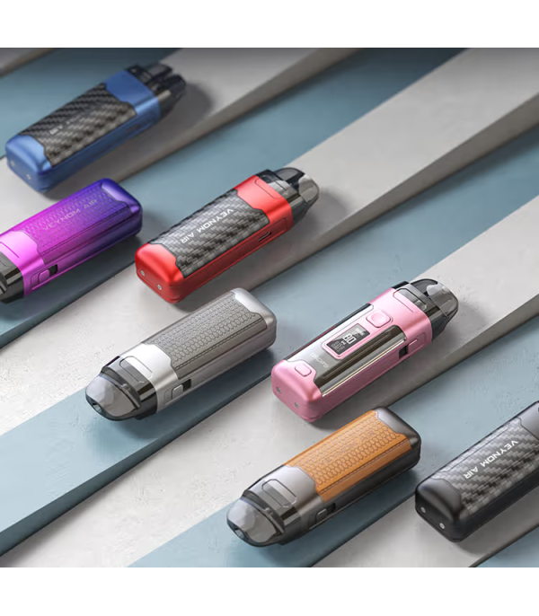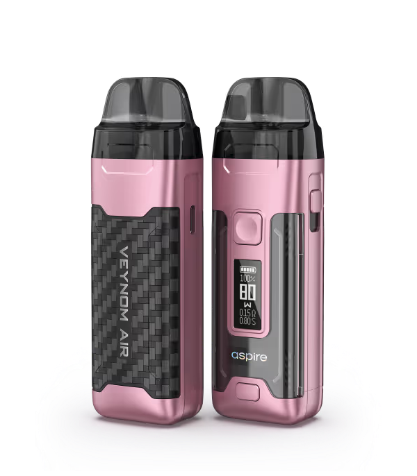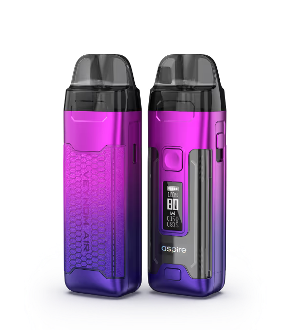 Aspire Veynom Air Pod Mod renkleri: Mavi, mor, kırmızı, pembe, kahverengi, siyah.