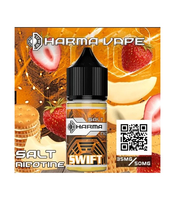 Dharma Swift Salt Likit, kavun, çilek ve bisküvi aromalarının dengeli birleşimi ile ferah ve tatmin edici bir vaping deneyimi sunar. 30 ml şişe, 35/50 mg nikotin seçenekleri ve pod mod cihazlarla uyumlu premium formül ile keyifli bir kullanım sağlar.