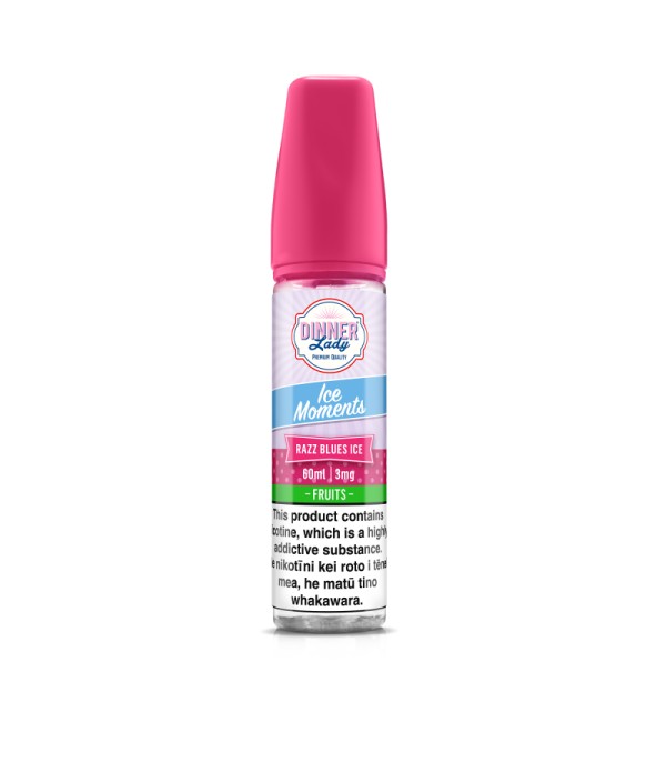 Dinner Lady Moments Razz Blues Ice Likit, tatlı yaban mersini ve taze ahududu aromalarını bir buz dokunuşuyla birleştirerek enfes birr tat deneyimi sunar.