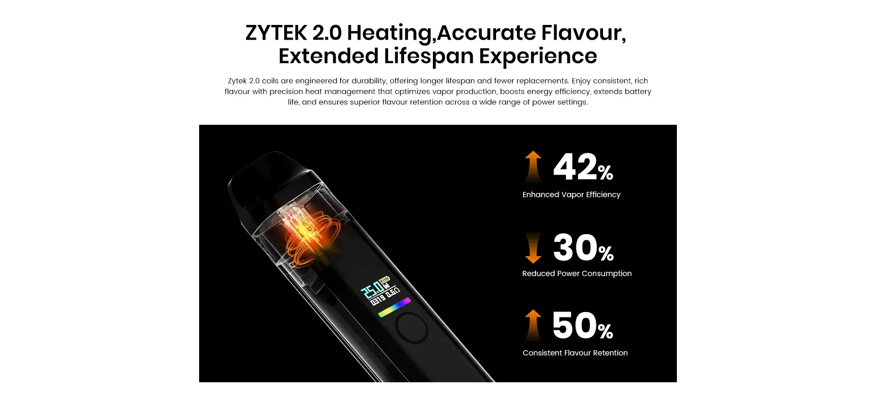 • ZYTEK 2.0 ile geliştirilmiş aroma netliği ve coil ömrü