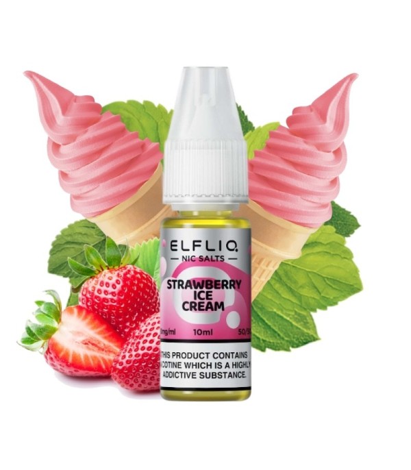 Elfliq Strawberry Ice Cream Salt Likit 10ml, çilek ve nane detaylı.