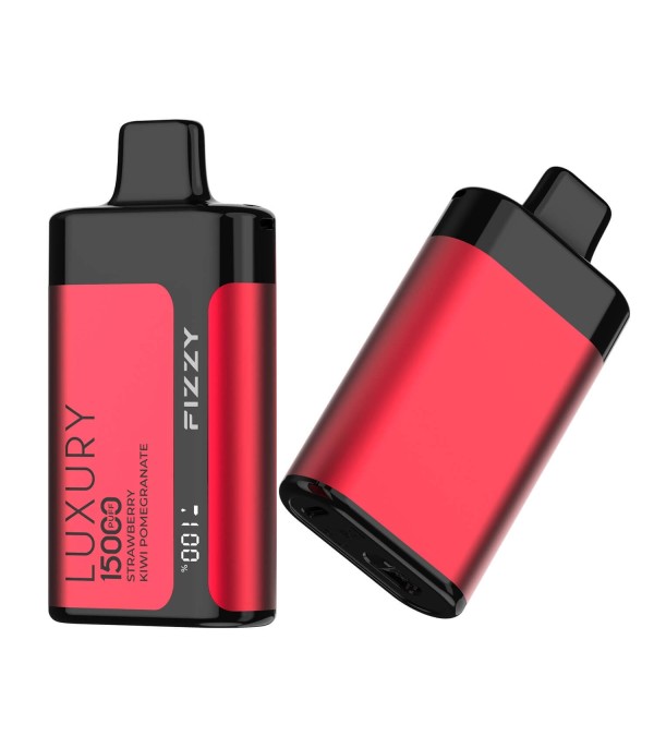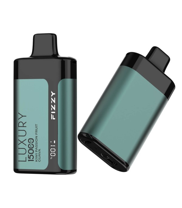 Fizzy Luxury 15000 Puffs Disposable Vape, 22 mL hazır dolu likit ve yaklaşık 15.000 puff kapasitesiyle uzun süreli kullanım sunar. Mesh coil yapısı, ayarlanabilir hava akımı ve LCD ekran ile aroma ve buhar yoğunluğunu kontrol etme imkânı verir. Aroma çeşitleri arasında Yaban Mersini & Ahududu, Çilek, Şeftali, Kivi Tutku Meyvesi gibi tatlı ve meyvemsi seçenekler bulunur. Metal gövde tasarımı ve taşıma halkasıyla hem dayanıklı hem şık bir kullanım deneyimi sağlar.