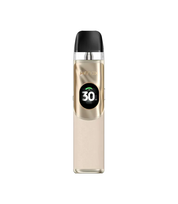 GeekVape Wenax Q2, şık derili yüzeyi, parlak metal detayları ve zarif tasarımıyla dikkat çeken premium bir pod cihazıdır.