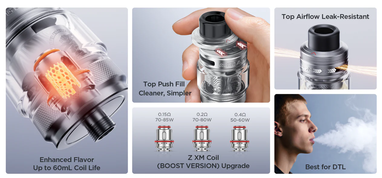 • Geekvape Z Series mesh coil modelleri ile tam uyumludur
