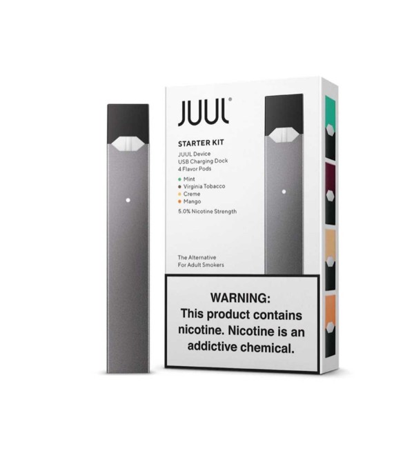 Gri Juul Cihazı Pod Mod, USB Şarj Dock'u ve kutusu.