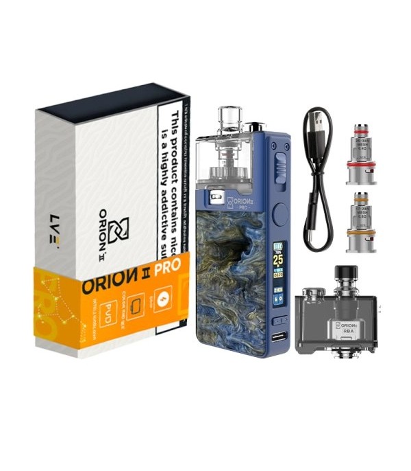 LVE Orion II Pro Blue Kit Pod + RBA, güçlü batarya, yüksek watt kapasitesi ve rebuildable atomizer desteği sayesinde pod mod kategorisinde üst düzey performans arayan kullanıcılar için tasarlanmıştır.