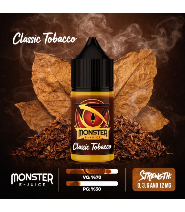 Monster Classic Tobacco Likit 30ml Classic Tobacco Baskın Lezzetler: Klasik Tütün, Badem ve Fındık VG-PG Oranı: 70-30 Nikotin Seçenekleri: 0mg-3mg-6mg-12mg Boyut: 30ml