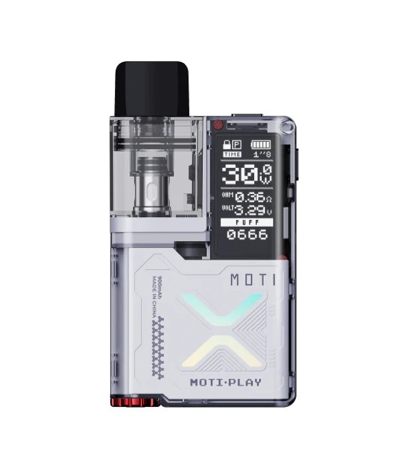 MOTI PLAY Pod Mod Elektronik Sigara Kit, şık tasarımı, yüksek dokunma ekranı (“mega screen”) ve çok yönlü coil seçenekleriyle kullanıcılarına kaliteli bir vaping deneyimi sunar. 900 mAh batarya gücü, ayarlanabilir güç aralığı ve hassas hava akımı kontrolüyle hem aroma hem buhar performansını dengeler.