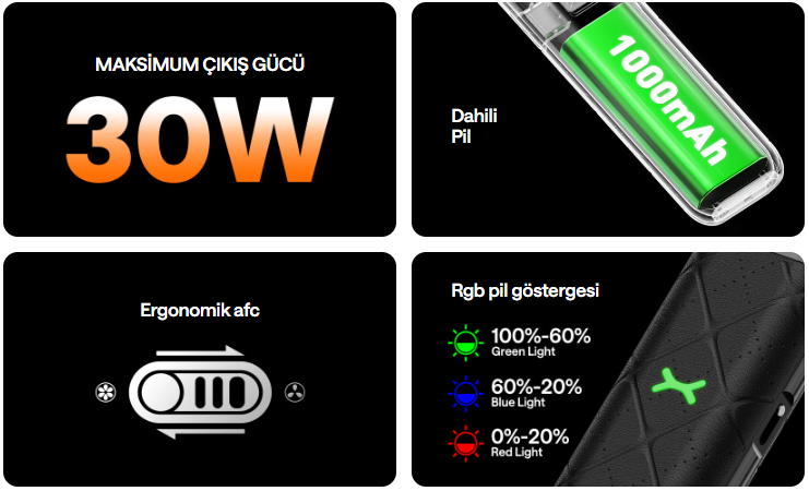• 1000mAh dahili batarya — uzun süreli kullanım sağlanır.