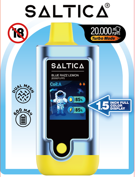 Saltica Digital Kullan At Elektronik Sigara: Kompakt tasarım, 24 ML likit kapasitesi, 600 mAh batarya, 50 MG nikotin, 20.000 çekim, 13 aroma seçeneği ve full dijital ekran ile benzersiz elektronik sigara deneyimi!