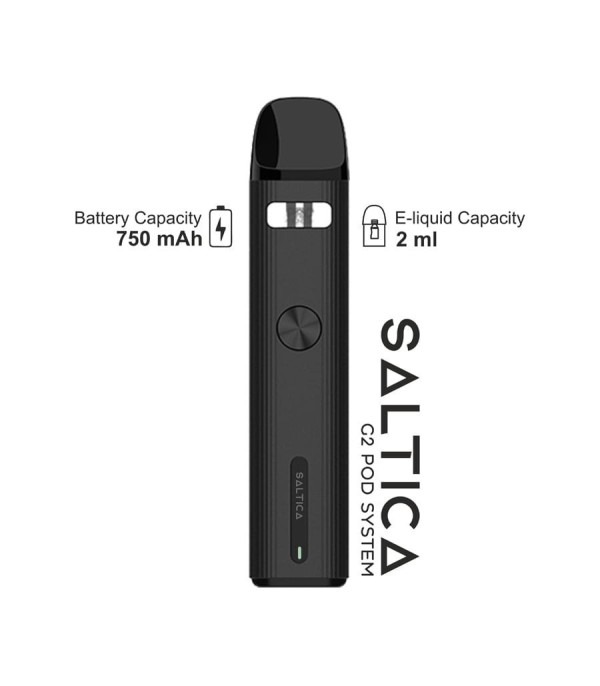 Saltica G2: 2ml hazne, 750mAh batarya, 18W maksimum güç. Hafif ve şık tasarım. Titreşim ve ışıklı özellikler. Şimdi keşfedin!