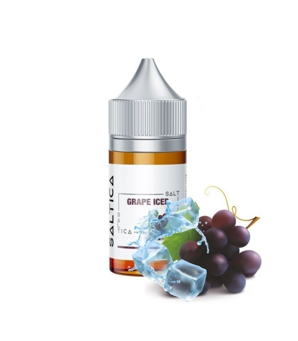 Saltica Grape Ice Salt Likit şişe, üzüm ve buz efektli e-likit ambalajı.
