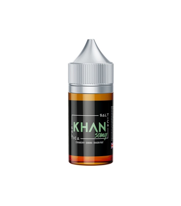 Saltica Khan Salt Likit ile egzotik ejder meyvesi, taze çilek ve lezzetli muzun efsane karışımının keyfini çıkarın. Benzersiz ve doyurucu bir elektronik sigara deneyimi!