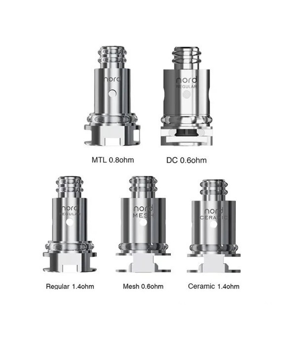 Smok Nord Coil, iki farklı tipte gelir: Normal ve Mesh. Nord Regular, 0,6 Ohm olarak derecelendirilmiştir ve Kanthal Mesh tel kullanır, DL hava akışına sahiptir. Nord Mesh ise 1,4 Ohm olarak derecelendirilmiştir, Kanthal tel kullanır ve MTL kullanımı için tasarlanmıştır. Smok Nord Coil, üstte iki o-halkası ve hızlı tak ve çalıştır sistemi için tabanda bir o-halkası daha bulundurur.