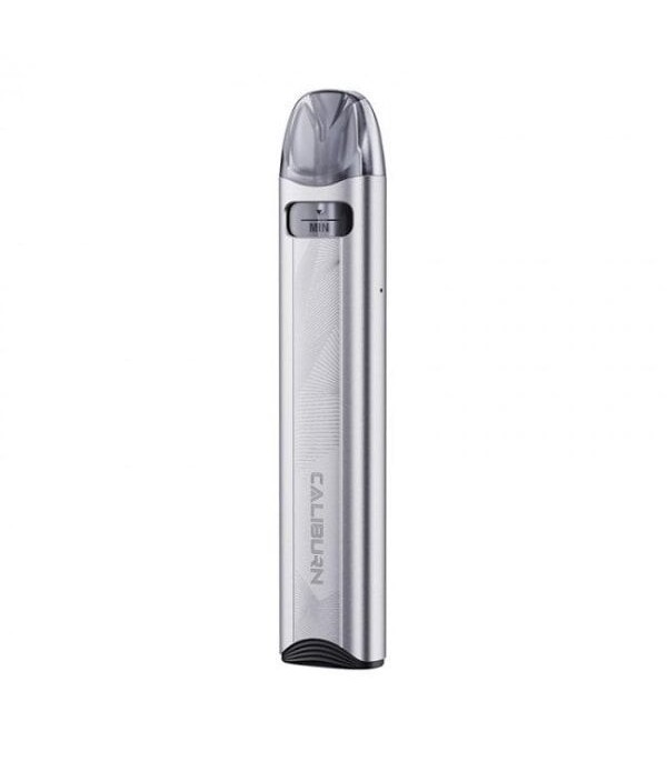 Uwell Kalmia Pod Mod gümüş renkli, ince ve şık elektronik sigara cihazı.