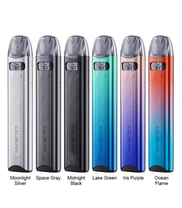 Uwell Caliburn A2S Pod Mod çeşitleri: Mavi, Kırmızı, Siyah, Altın, Gri, Turkuaz.