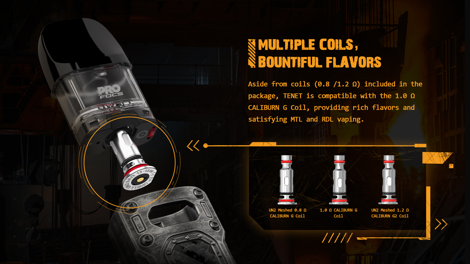 750mAh bataryaya, sağlam tasarıma ve ünlü Caliburn G/G2 Bobinleri ve Pod'larıyla uyumluluğa sahip Uwell Caliburn TENET 16W Pod Sistemini deneyimleyin.