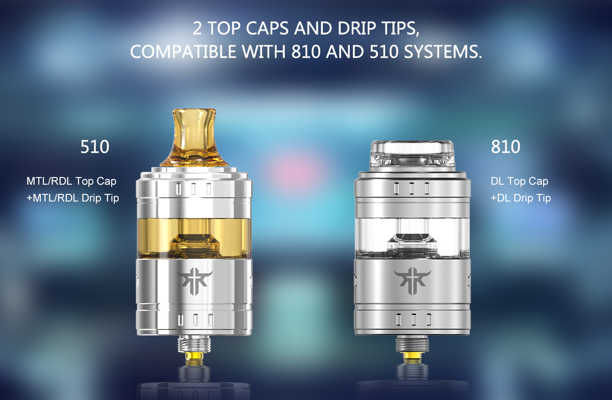 Büyük e-likit kapasitesi ve yenilikçi hava akışı ile tasarlanmıştır . 3 hava akımı seti ve bacası vardır ve MTL, RDL ve DL elektronik sigarayı destekler. Aynı zamanda RDA benzeri bir deneyim için doğrudan yandan hava akışına sahiptir.