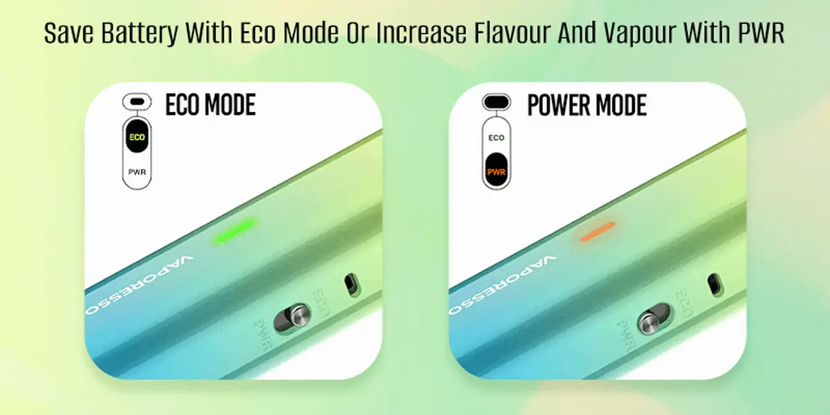 Vaporesso Eco Nano Pod Mod, güçlü 1000mAh bataryası ile uzun kullanım süresi sunar ve 16W maksimum çıkış gücü ile ağızdan akciğere (MTL) içim için ideal miktarda buhar üretir.