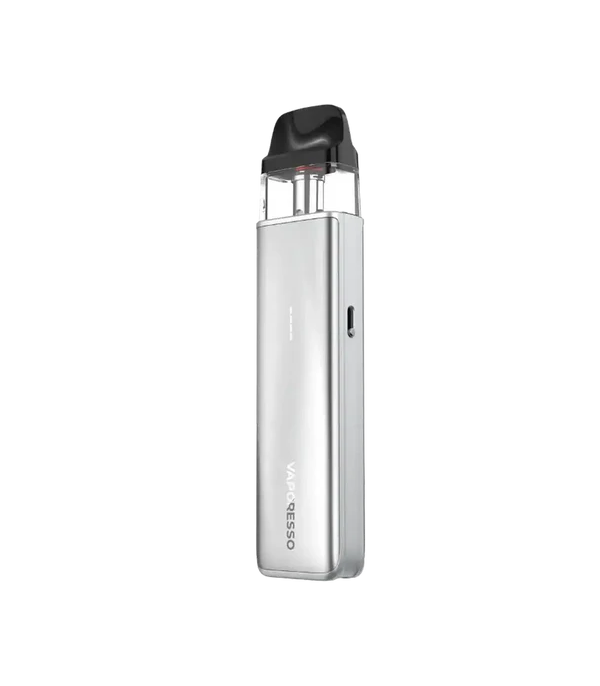 Vaporesso Luxe XR Max Pod Mod gümüş renkli, dijital ekranlı, güçlü elektronik sigara.
