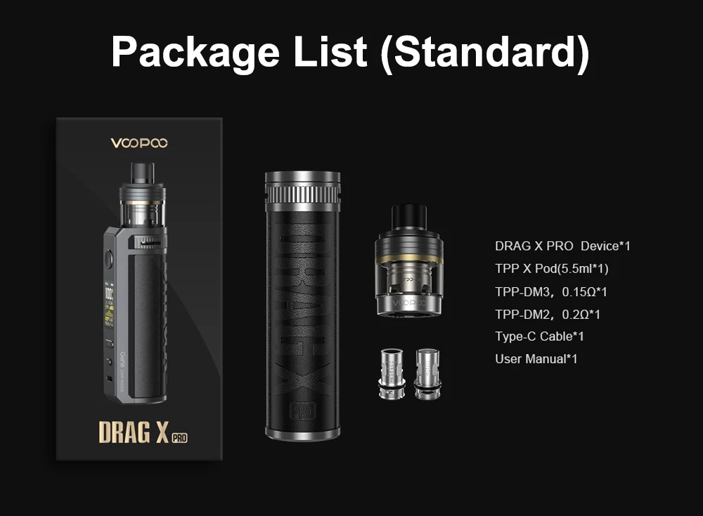 Drag X Pro Kit, Drag Serisinden ilham almıştır. VOOPOO Drag X Pro Kit, görünümünden yapısına kadar her ayrıntıyı en uç noktalara kadar parlatıyor. VOOPOO Drag X Pro Kit, yükseltilmiş GENE.FAN 3.0 çipini benimser; patlayıcı güç, istikrarlı ve zengin akıllı işlevler sağlar. Otomatik/Manuel mod ve geçiş anahtarı (Açma/Kapama düğmesi) ile en üst performansı hissedebilirsiniz. Drag X Pro, her birini tatmin edecek şekilde Akıllı/RBA/TC modlarını destekler.