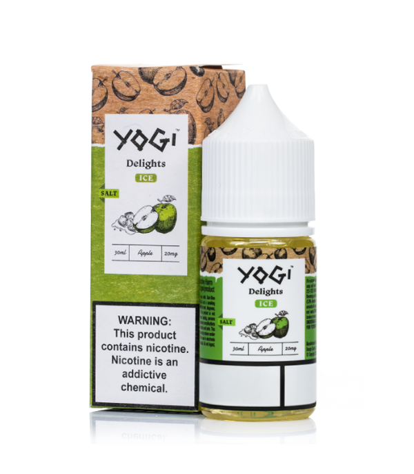 Yogi Delight Apple Peach Ice Salt Likit: Çıtır elma, sulu şeftali ve ferah mentol tadı. 30 mL salt likit, MTL cihazlara özel.
