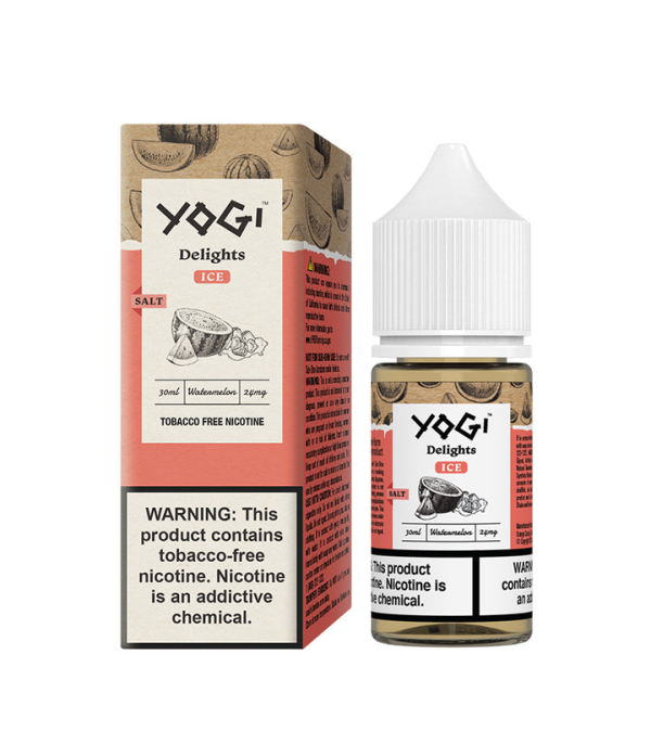 Yogi Delights Watermelon Ice Salt Likit, yazın vazgeçilmezi olan taze karpuzun tatlı ve sulu lezzetini serin mentol dokunuşuyla birleştirerir.